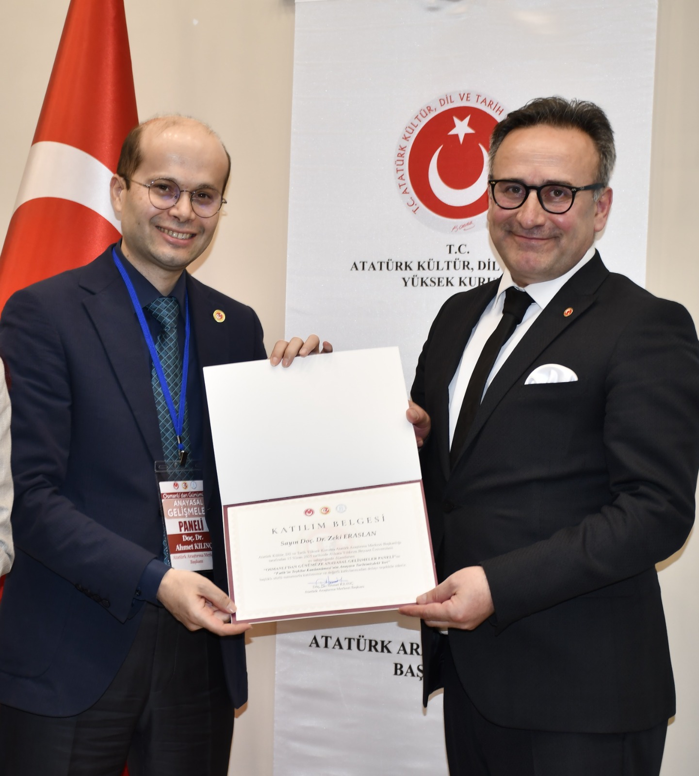 Başkanlığımız (ATAM) tarafından 15 Nisan 2025 tarihinde Ankara Yıldırım Beyazıt Üniversitesi (AYBÜ) Hukuk Fakültesi ev sahipliğinde “Osmanlı’dan Günümüze Anayasal Gelişmeler” paneli gerçekleştirildi. ATAM Başkanı Doç. Dr. Ahmet Kılınç ve AYBÜ Hukuk Fakültesi Dekanı Prof. Dr. Neslihan Karataş Durmuş’un açış konuşmaları ile başlayan panelin moderatörlüğünü de ATAM Başkanı Doç. Dr. Ahmet Kılınç üstlendi. Panelde Atatürk Kültür Merkezi Başkanı ve ATAM Bilim Kurulu Asli Üyesi Doç. Dr. Zeki Eraslan “Fatih’in Teşkilât Kanûnnâmesi’nin Anayasa Tarihimizdeki Yeri” başlıklı sunumunu, Ankara Üniversitesi Hukuk Fakültesi Öğretim Üyesi ve ATAM Bilim Kurulu Asli Üyesi Prof. Dr. Belkıs Konan “Türk Anayasa Tarihinde Temel Hak ve Hürriyetlerin Düzenlenmesi Açısından 1876 Anayasası” başlıklı sunumunu ve AYBÜ Öğretim Üyesi ve Cumhurbaşkanlığı Hukuk Politikaları Kurulu Üyesi Prof. Dr. Mehmet Ali Zengin ise “Türk Anayasa Hukukunda Sosyal Haklar” başlıklı sunumunu gerçekleştirdi.