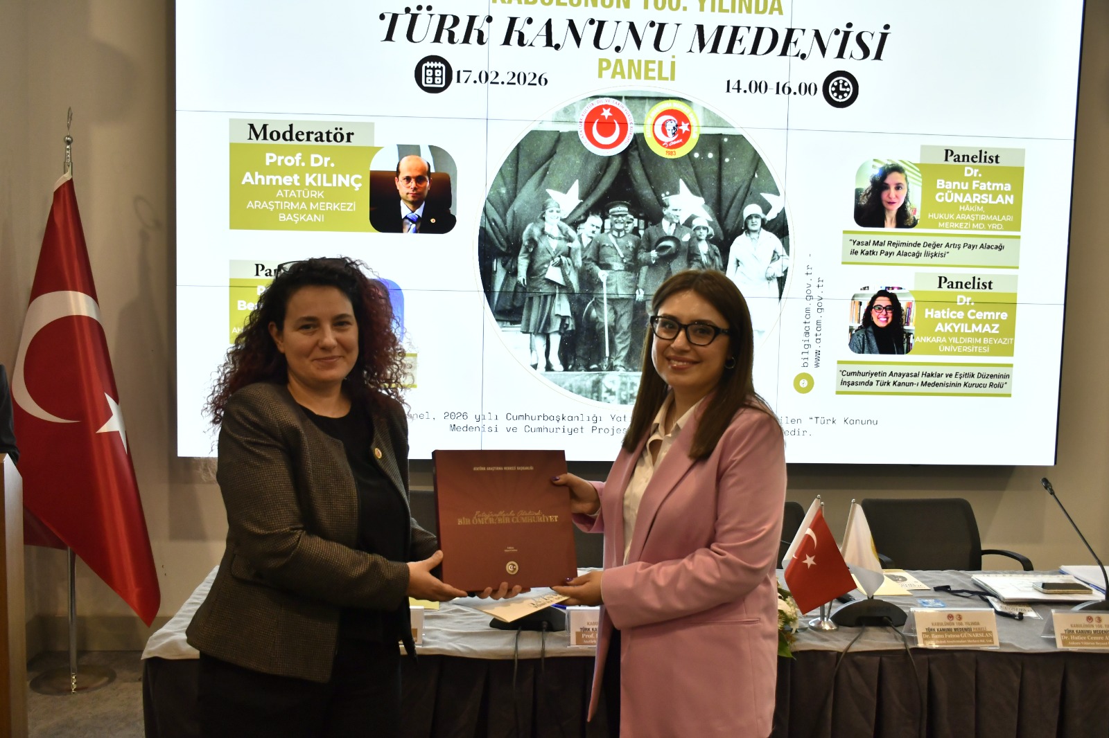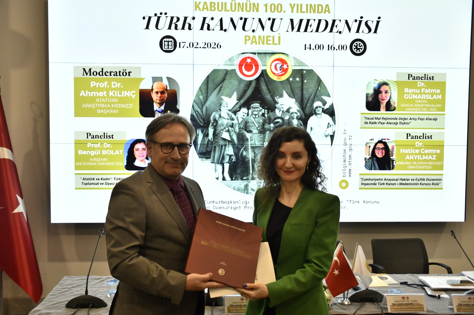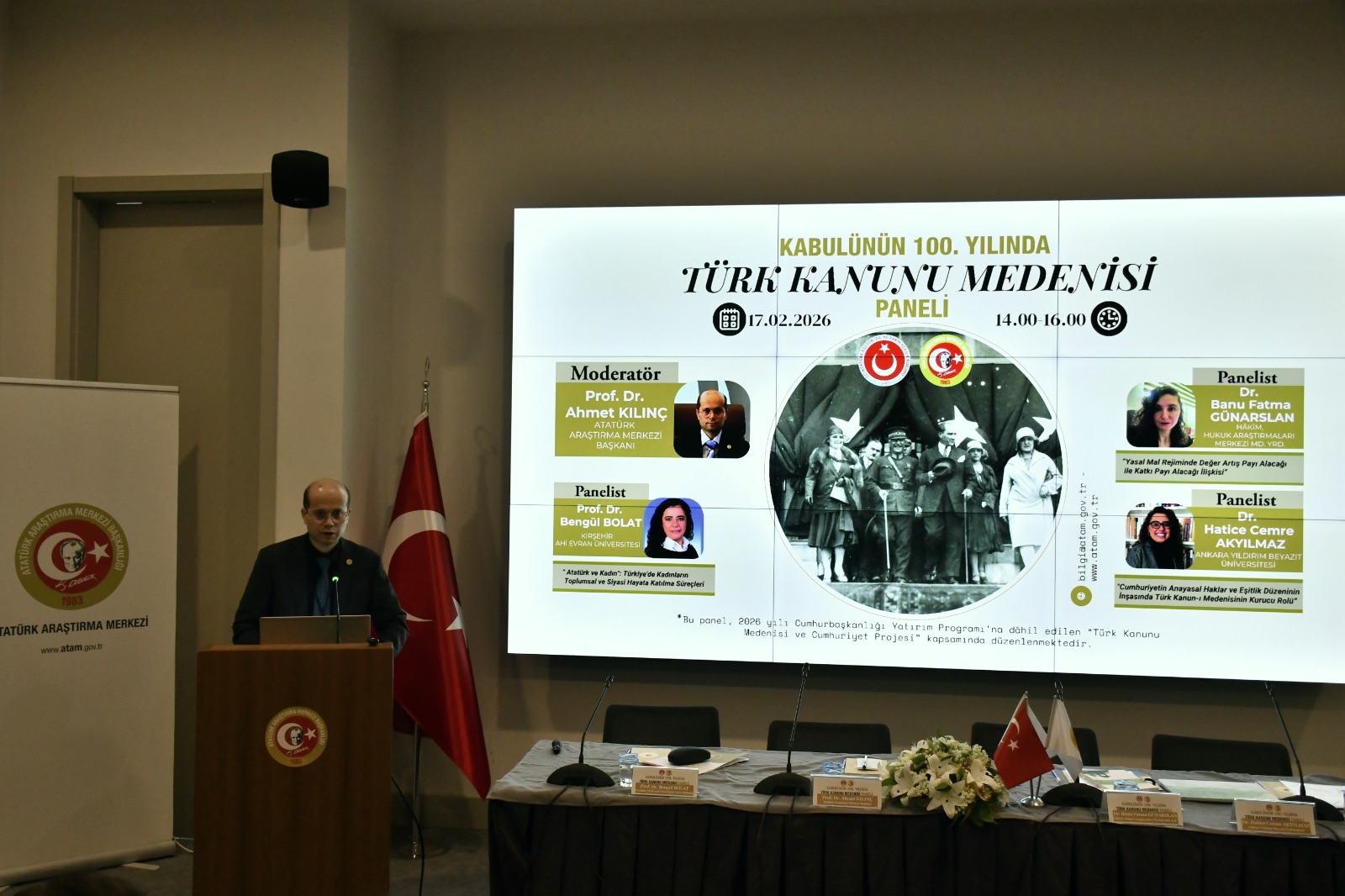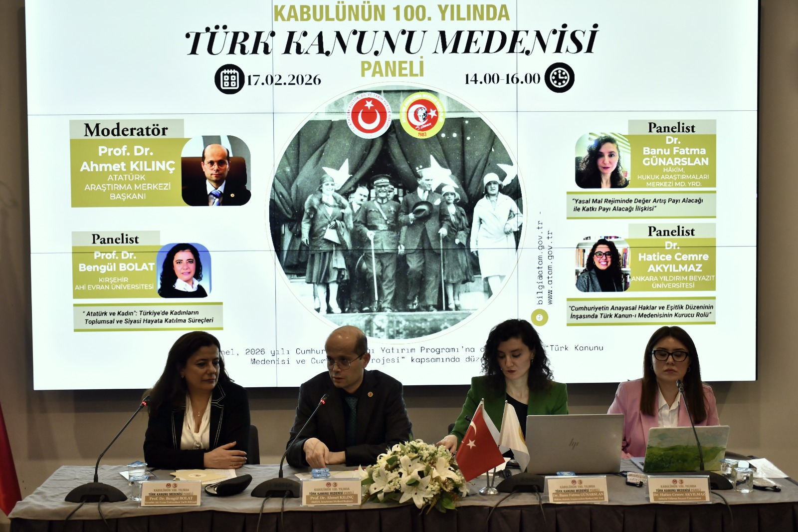 Atatürk Araştırma Merkezi tarafından, Türk Medeni Kanunu’nun kabulünün 100. yılı dolayısıyla düzenlenen “Kabulünün 100. Yılında Türk Kanunu Medenisi Paneli”, 17 Şubat 2026 tarihinde Atatürk Kültür, Dil ve Tarih Yüksek Kurumu Yerleşkesi Seminer Salonu’nda gerçekleştirildi.