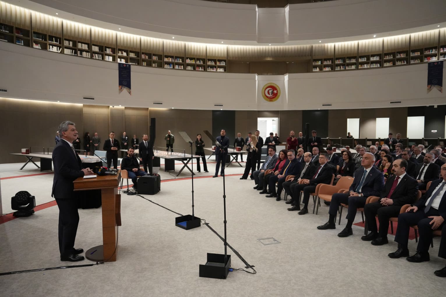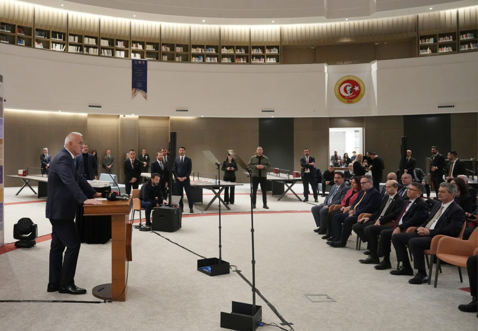 Konuşmaların ardından, Atatürk Kültür, Dil ve Tarih Yüksek Kurumu’na bağlı dört kurumun kütüphanelerini tek çatı altında birleştiren yeni kütüphanenin açılışı gerçekleştirilerek kurdele kesimi yapılmıştır.