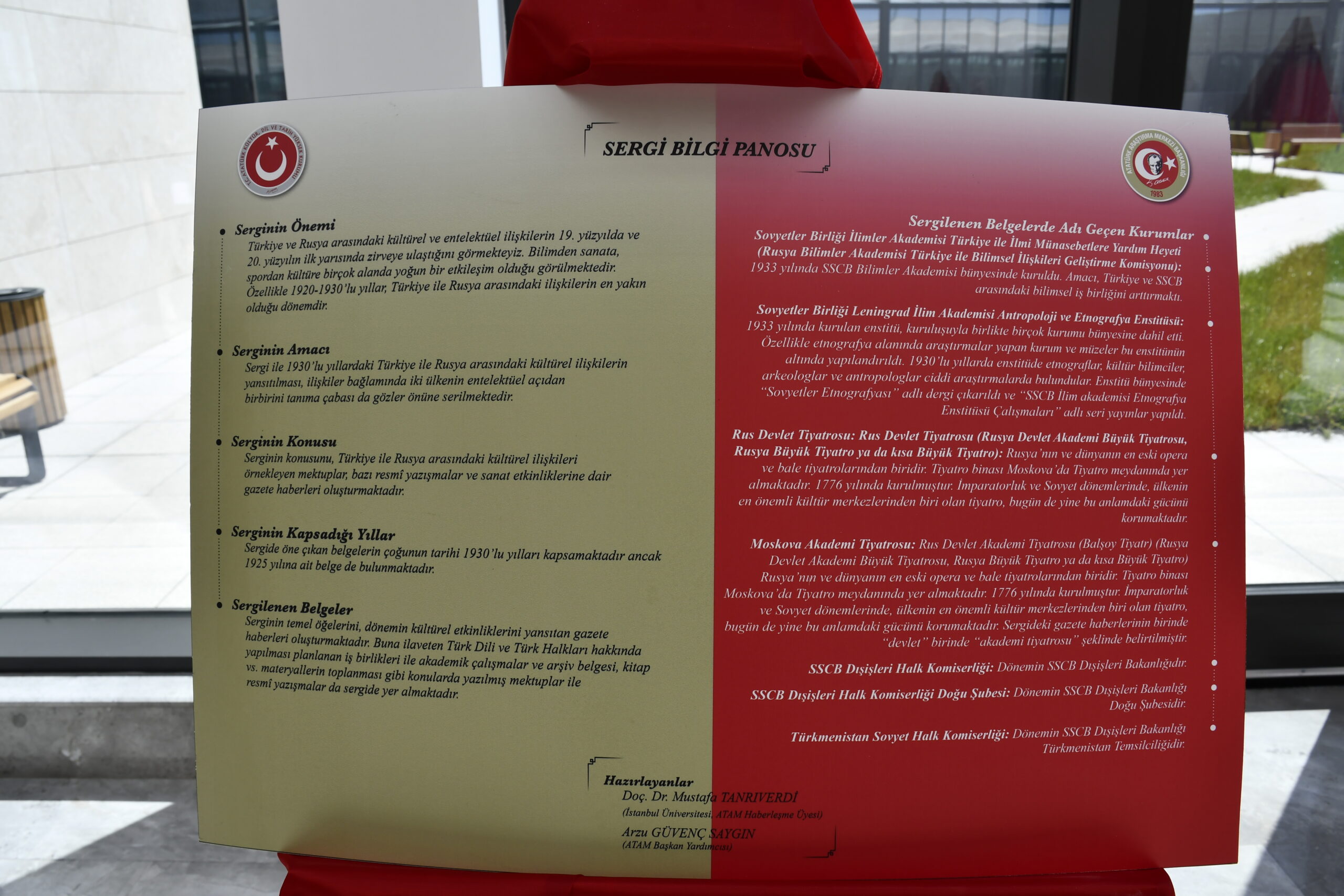 Atatürk Araştırma Merkezi tarafından 5-9 Mayıs 2025 tarihlerinde Ankara’da düzenlenmekte olan “Cumhuriyet Dönemi Türkiye ile Rusya Arasında Entelektüel Karşılaşmalar” sergisinin açılışı 5 Mayıs 2025 tarihinde gerçekleştirildi. Sergimiz 9 Mayıs 2025 Cuma günü saat 18.00’e kadar ziyarete açık olacaktır.