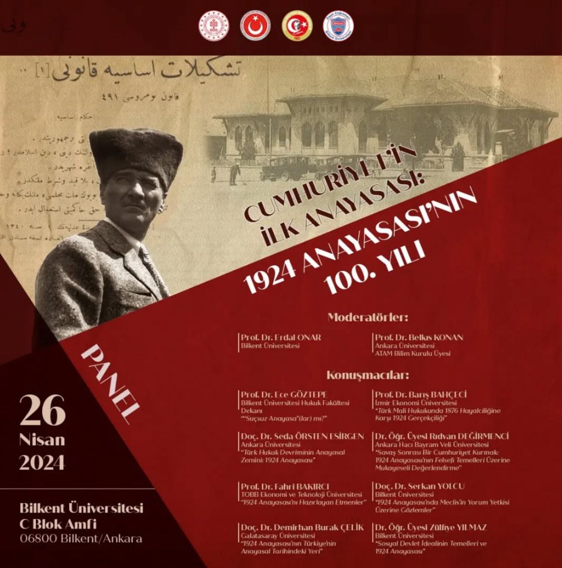 “Cumhuriyet’in İlk Anayasası: 1924 Anayasası’nın 100. Yılı Paneli” 26 Nisan 2024 tarihinde Atatürk Araştırma Merkezi ve Bilkent Üniversitesi işbirliği Bilkent Üniversitesi’nde düzenlenmiştir. Panelde 8 konuşmacı yer almış olup, panele yurtiçinden 15 katılımcı ve yaklaşık 100 izleyici katılım sağlamıştır. Panel 1924 Anayasasının anayasa trihimideki yeri ve hukuksal özelliklerinin derinlemesine analizine odaklanmıştır. Anayasalar laboratuvar ortamında yapılmazlar. İçinden çıktıkları toplumun siyasal ve sosyal dinamiklieri ve tarihsel koşullar ile yoğrulurlar. Toplumların temel siyasal tercihlerini belirtirken, yapıldıkları zamanın özelliklerini de yansıtırlar. Bu bakımdan Cumhuriyetin ilanından çok kısa bir süre sonra yapılan ve otuz altı yıl yürülükte kalan 1924 Anayasası üzerindeki akademik tartışma, Türkiye Cumhuriyetinin kuruluş ve pekişme öyküsünün hukuksal düzeydeki bir yansıması olarak görülebilir. İki oturum halinde gerçekleşen panelin öğleden önceki oturumunda dört konuşmacı 1924 Anayasasını farklı perpsektiflerden ele almış ve hem geçmişi anlama hem de Anayasanın bugüne teşmil eden yönlerini sorgulama imkânı yaratılmıştır. Konuşmacılar, mali hukuk düzenlemelerinin anayasal düzene etkisi, 1924 Anayasasının çizdiği hukuksal çerçevenin Türk devrimindeki rolü, benzer yıllarda savaş sonrası kurulan başka cumhuriyetlerde kıyaslandığında 1924 Anayasasının irdelenmesi ve 1924 Anayasasının ortaya çıkmasındaki etmenlerden hareketle anayasa yapma gücü üzerindeki tartışmaların günümüze sarkan boyutları ile ilgili analizler yapılmıştır. Bunların her biri yüz yaşındaki Anayasamızın yeniden gözden geçirmek ve hukukumuzdaki gerçek etkisini sorgulamak için mükemmel bir entellektüel kapı aralamıştır.