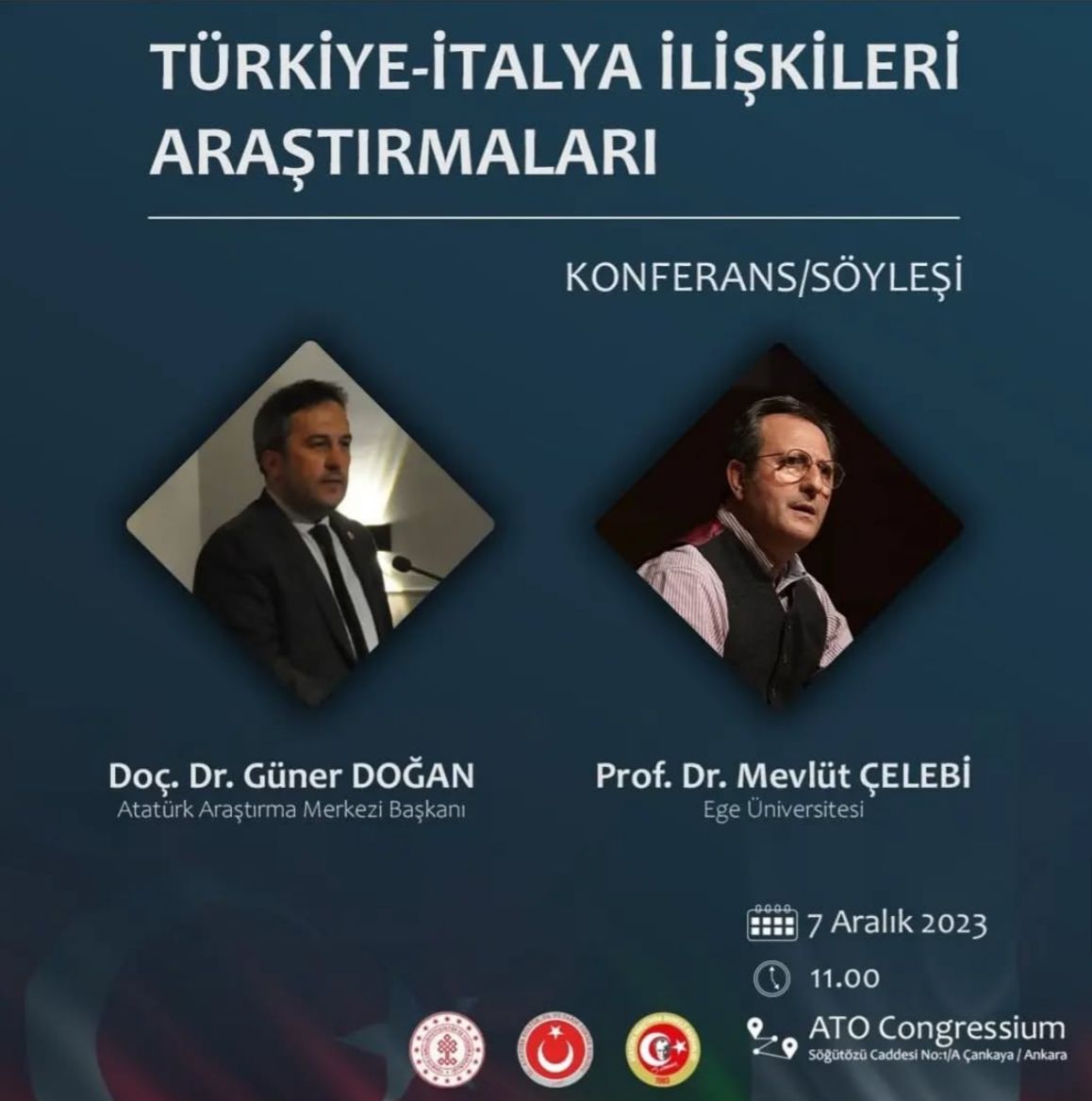 7 Aralık Perşembe günü ATO Congresium’da Prof. Dr. Mevlüt Çelebi ve ATAM Başkanı Sayın Doç. Dr. Güner Doğan’ın söyleşileri yapıldı. Söyleşi sırasında; İtalyan arşivlerinin Türk tarihi açısından önemi, Türk-İtalyan ilişkilerinin Osmanlı ve Cumhuriyet Dönemlerinden itibaren tarihsel bir bakış açısıyla değerlendirilmesi ve İtalya’nın Avrupa Tarihindeki önemine değinildi. Geniş bir perspektifle gerçekleşen söyleşi, dinleyicilere Türk- İtalyan ilişkilerinde birçok önemli ayrıntı ve bilgi sundu.