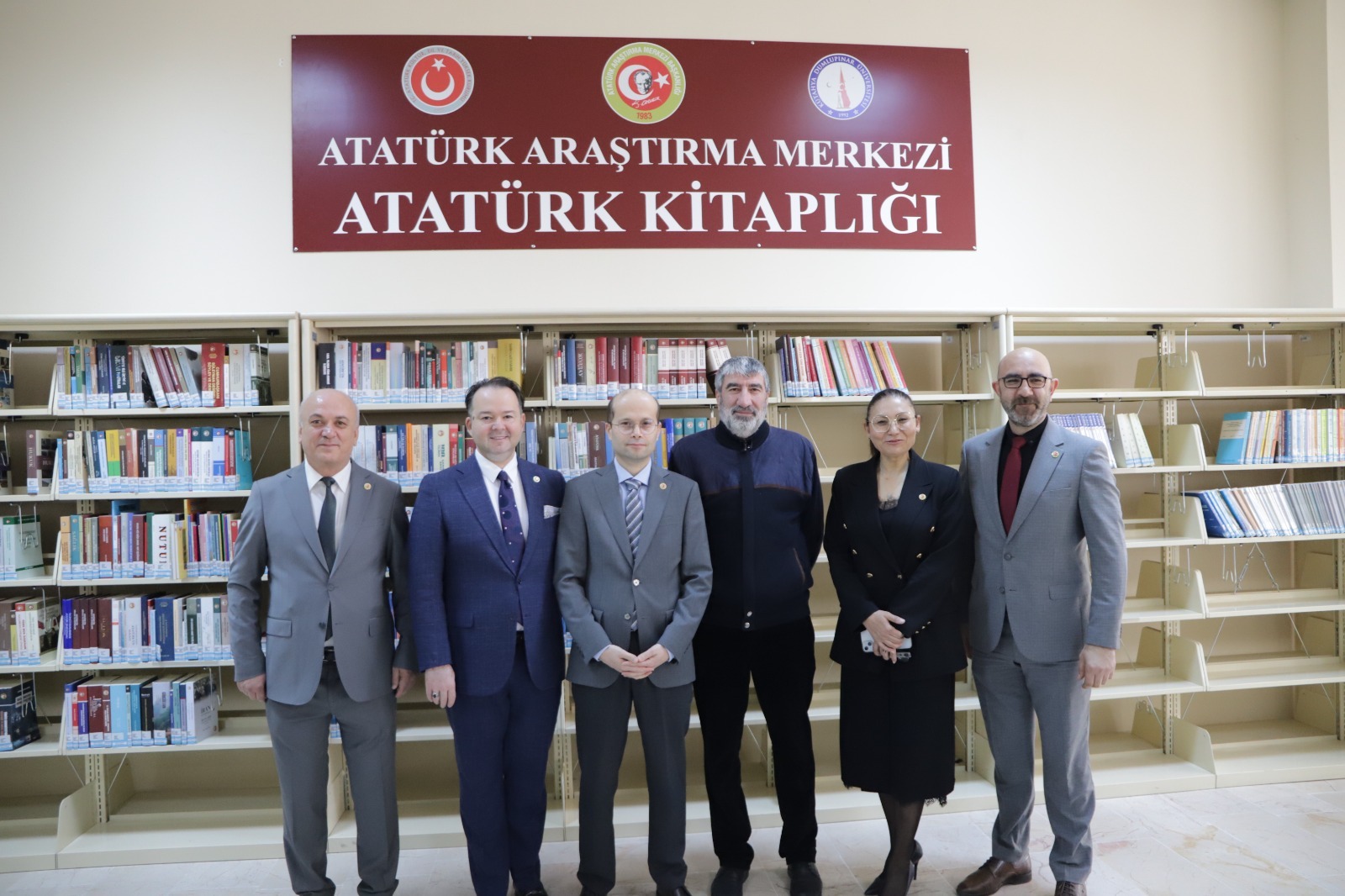 Kurumumuz ile Kütahya Dumlupınar Üniversitesi iş birliğinde “Devletçilik İlkesi: Tarihsel Süreçte Türk Devlet Geleneği ve Gelişimi” Paneli düzenlenmiştir. Bu kapsamda, ATAM Başkanı Doç. Dr. Ahmet KILINÇ, Kütahya Valisi Musa IŞIN ile Kütahya Üniversitesi Rektörü Prof. Dr. Süleyman KIZILTOPRAK’ı makamlarında ziyaret etti. KILINÇ’ın yürütücülüğünde gerçekleştirilen panelde, ATAM Bilim Kurulu Asli Üyesi Prof. Dr. Altay Tayfun ÖZCAN “Bozkırdan Akdeniz’e Uzanan Egemenlik Sürecinde Türk Devlet Anlayışının Gelişimi”, ATAM Bilim Kurulu Asli Üyesi Prof. Dr. Arif KOLAY “Cumhuriyet, Devlet ve Tarihi Devamlılık”, Kütahya Dumlupınar Üniversitesi Öğretim Üyesi Prof. Dr. Emine DİNGEÇ ise “Osmanlı Devlet Anlayışı” başlıklı bildirilerini sundular. Panele, Kütahya Dumlupınar Üniversitesi Rektörü Prof. Dr. Süleyman KIZILTOPRAK, Kütahya Dumlupınar Üniversitesi Rektör Yardımcısı Prof. Dr. İsmail YALÇIN, Kütahya Dumlupınar Üniversitesi Dekanı Prof. Dr. Bülent ZEYBEK, Kütahya Dumlupınar Üniversitesi Dekan Yardımcısı Prof. Dr. Orhan Murat KALFA, Kütahya Emniyet Müdürü Osman ELBİR izleyici olarak katılmışlardır.