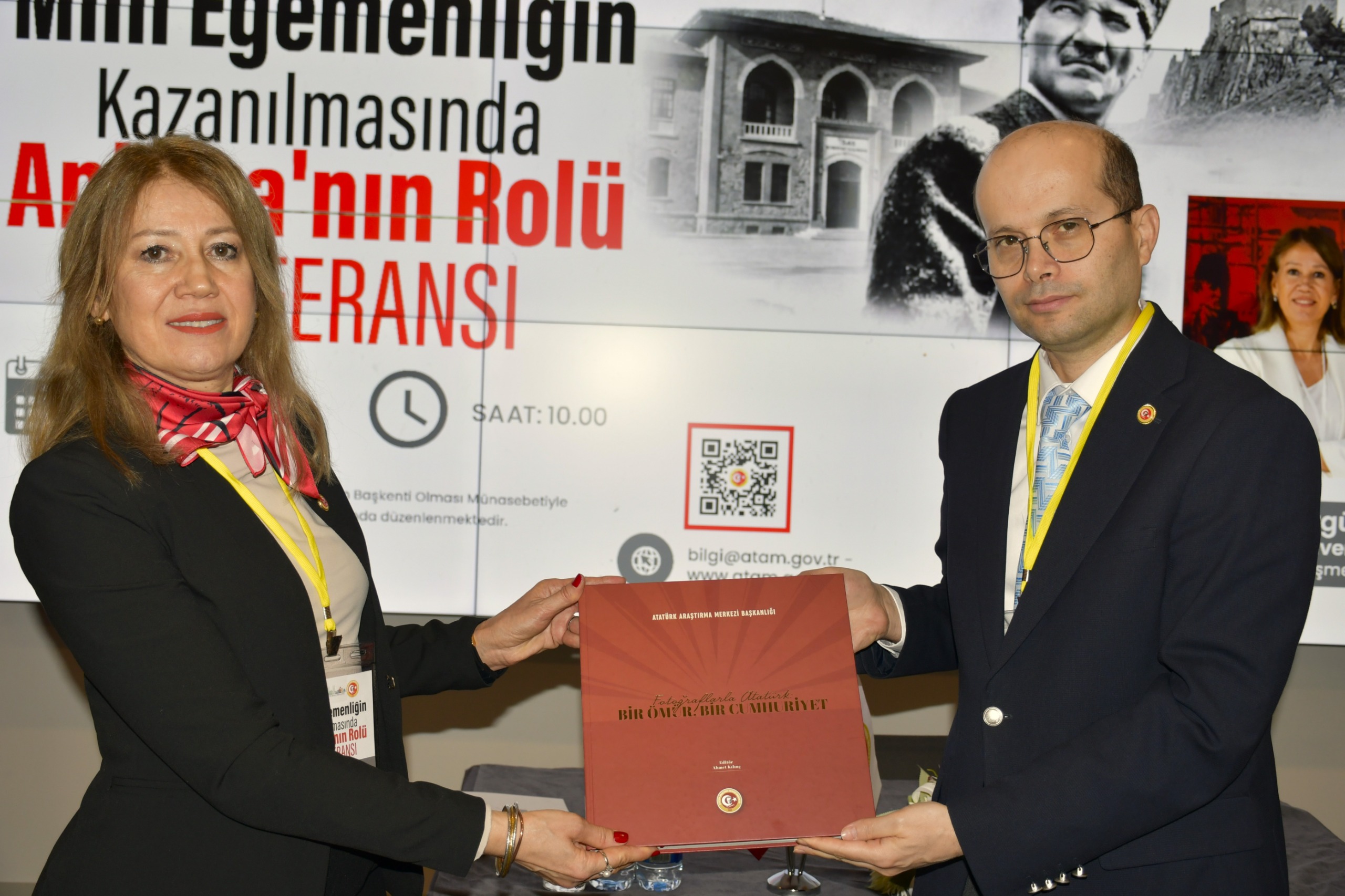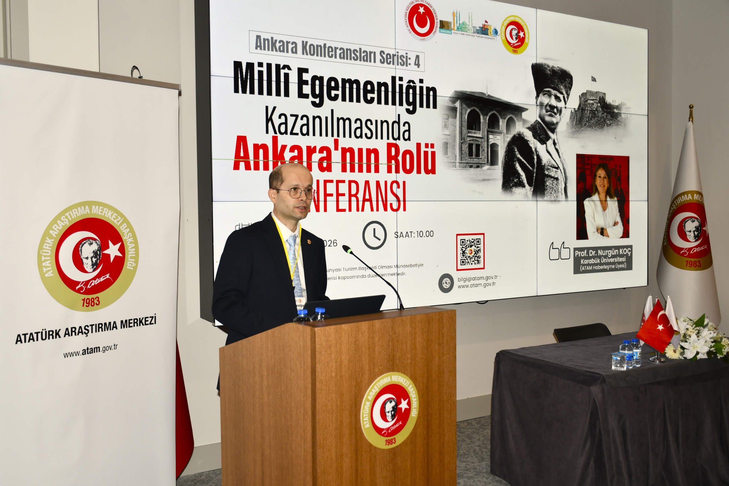 Atatürk Araştırma Merkezi (ATAM) tarafından düzenlenen “Millî Egemenliğin Kazanılmasında Ankara’nın Rolü” başlıklı konferans, 24 Nisan 2026 tarihinde Atatürk Kültür, Dil ve Tarih Yüksek Kurumu Seminer Salonu 2’de gerçekleştirildi. Programa ATAM Başkan Yardımcısı Arzu Güvenç Saygın ve ATAM Bilim Kurulu Üyesi Prof. Dr. Hale Şıvgın katıldı. Saygı duruşu ve İstiklal Marşı ile başlayan programda, ATAM tanıtım filmi ve 23 Nisan’a özel video gösterildi. Açış konuşmasını yapan ATAM Başkanı Prof. Dr. Ahmet Kılınç, Ankara’nın Millî Mücadele’deki rolüne dikkat çekerek, “Ankara, bir direnişin ve yeniden doğuşun vücut bulduğu yerdir; millî egemenliğin uygulama sahasıdır.” dedi. Konferansı veren Prof. Dr. Nurgün Koç, millî egemenliğin tanımı ve tarihsel gelişimini ele aldı. Mondros Ateşkes Antlaşması ve Sevr Antlaşması sonrası oluşan ortamı değerlendirerek, Mustafa Kemal Atatürk liderliğinde yürütülen Millî Mücadele’nin düşünsel ve örgütsel boyutlarını anlattı. Sürecin Havza Genelgesi ve Amasya Genelgesi ile başlayıp Erzurum Kongresi ve Sivas Kongresi ile güçlendiğini ifade etti. Koç, Ankara’da Ahilik teşkilatı, Ankara Müdafaa-i Hukuk Cemiyeti ve halkın desteğinin önemine değinerek, Ali Fuat Cebesoy’un rolünü vurguladı. Mustafa Kemal Paşa’nın Ankara’ya gelişi ve halkın coşkulu karşılamasını da aktaran Koç, Türkiye Büyük Millet Meclisi’nin Açılışı ile Ankara’nın millî egemenliğin merkezi hâline geldiğini belirtti. Program, teşekkür ve takdim ile sona erdi.
