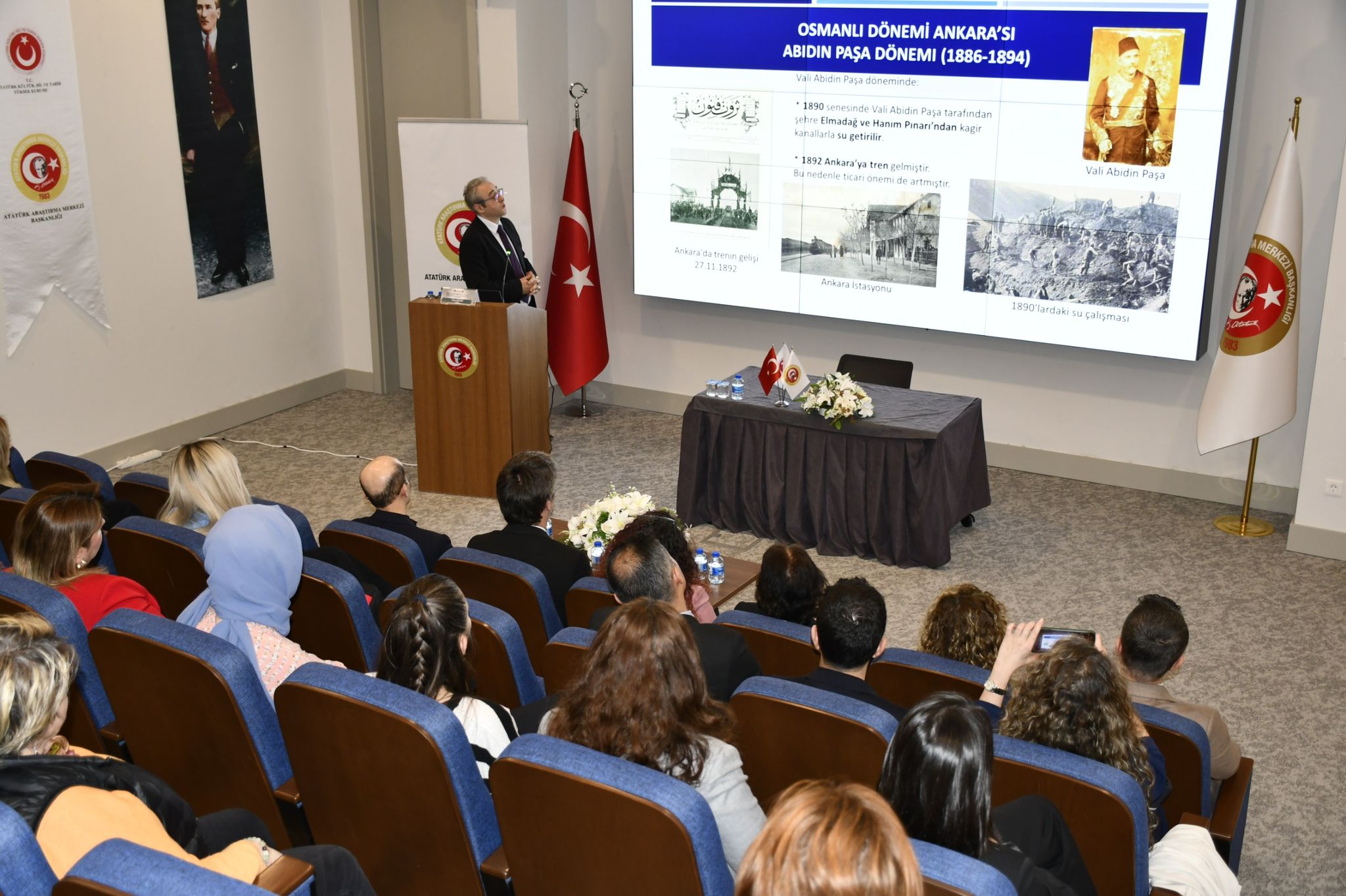 Atatürk Araştırma Merkezi tarafından, Ankara’nın 2026 yılı Türk Dünyası Turizm Başkenti seçilmesi münasebetiyle düzenlenen Ankara Konferansları Serisi’nin üçüncü programı, 22 Nisan 2026 tarihinde Atatürk Kültür, Dil ve Tarih Yüksek Kurumu Seminer Salonu 2’de gerçekleştirildi. Yazar Tolga Aydoğan’ın konuşmacı olduğu konferansa; Macaristan Büyükelçisi Viktor Matis, ATAM Başkanı Prof. Dr. Ahmet Kılınç, ATAM Başkan Yardımcısı Arzu Güvenç Saygın, TTK Başkan Yardımcısı Doç. Dr. Yunus Pustu, ATAM Bilim Kurulu Asli Üyesi Prof. Dr. Ayten Sezer Arığ ve ATAM Bilim Kurulu Asli Üyesi Doç. Dr. Emre Saral başta olmak üzere davetliler katıldı. Program, saygı duruşu ve İstiklal Marşı’nın ardından Atatürk Araştırma Merkezi tanıtım filmi ile başladı. Açılış konuşmasını gerçekleştiren Prof. Dr. Ahmet Kılınç, Ankara’nın tarihsel ve diplomatik kimliğine dikkat çekti. Konferansta Tolga Aydoğan, Ankara’daki diplomatik misyonlara ilişkin hazırlanan sergi, belgesel ve yayın çalışmalarını tanıtarak Osmanlı döneminde diplomatik ilişkilerin ortaya çıkışından itibaren süreci ele aldı. Millî Mücadele yıllarında yayımlanan gazeteler, istihbarat faaliyetleri, İstanbul’un işgali ve Meclis-i Mebusan’ın kapatılması gibi gelişmelere değinen Aydoğan, Türkiye Büyük Millet Meclisi’nin açılışıyla kurulan Hariciye Vekâleti ve bu dönemde kullanılan yapılar hakkında bilgi verdi. Ankara’nın Osmanlı dönemindeki görünümünden 1916 yangınına, şehirde fotoğraflanan ilk elçilik binasından ilk konsolosluklara kadar pek çok başlığı değerlendiren Aydoğan, Millî Mücadele döneminde elçiliklerin konumlandığı alanlar, Evkaf Evleri ve ilk elçilik yapılarının mimarları üzerine de açıklamalarda bulundu. Ayrıca Ankara’da açılan ilk Sovyet elçiliği, geçici temsilcilikler ve yabancı diplomatların başkente bakışı gibi konulara değindi. Amanullah Han’ın ziyareti sonrasında Ankara’nın diplomatik merkez olarak önem kazanmasının altını çizdi. Program, Prof. Dr. Ahmet Kılınç’ın Tolga Aydoğan’a teşekkür belgesi ve kitap takdimiyle sona erdi.